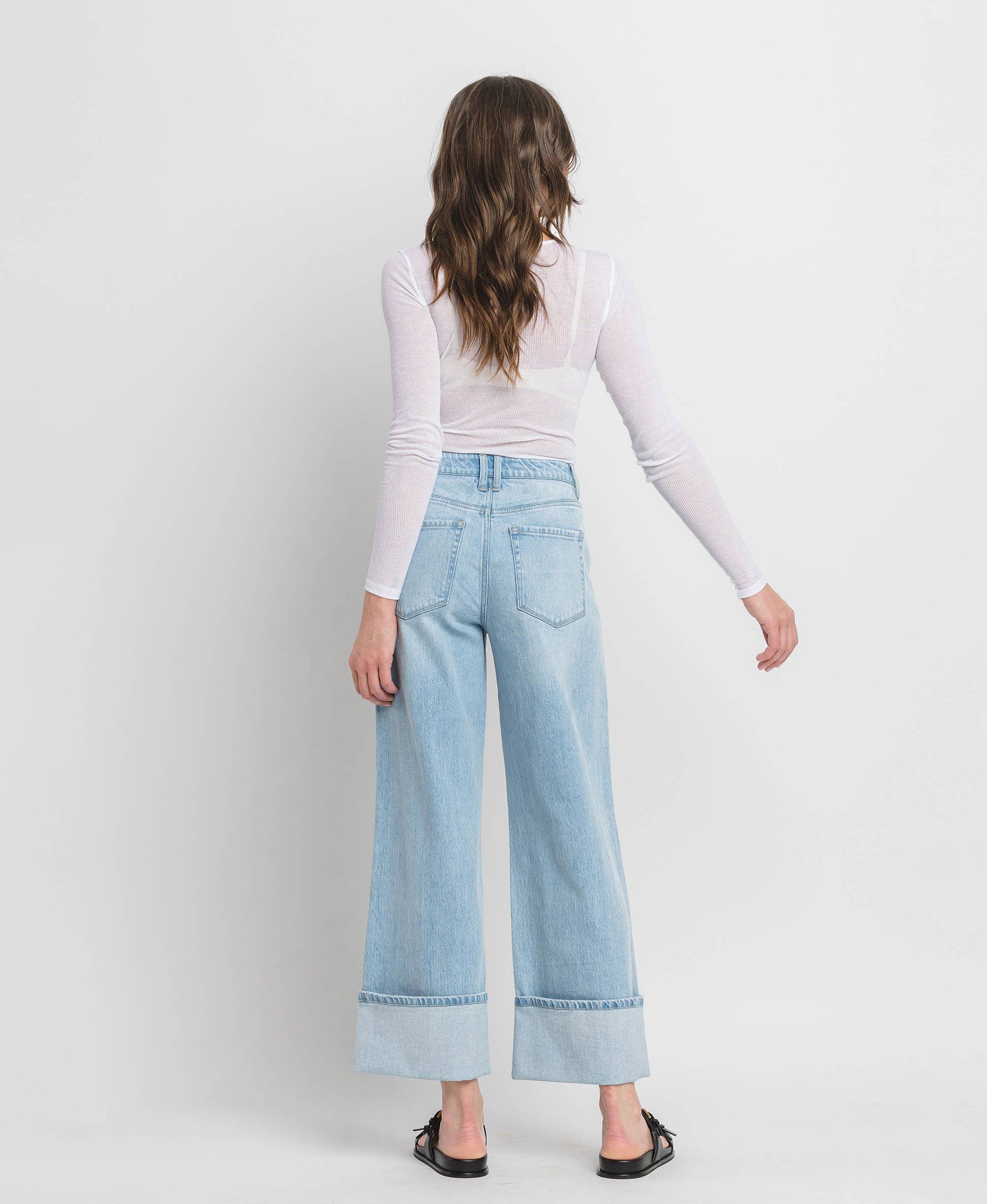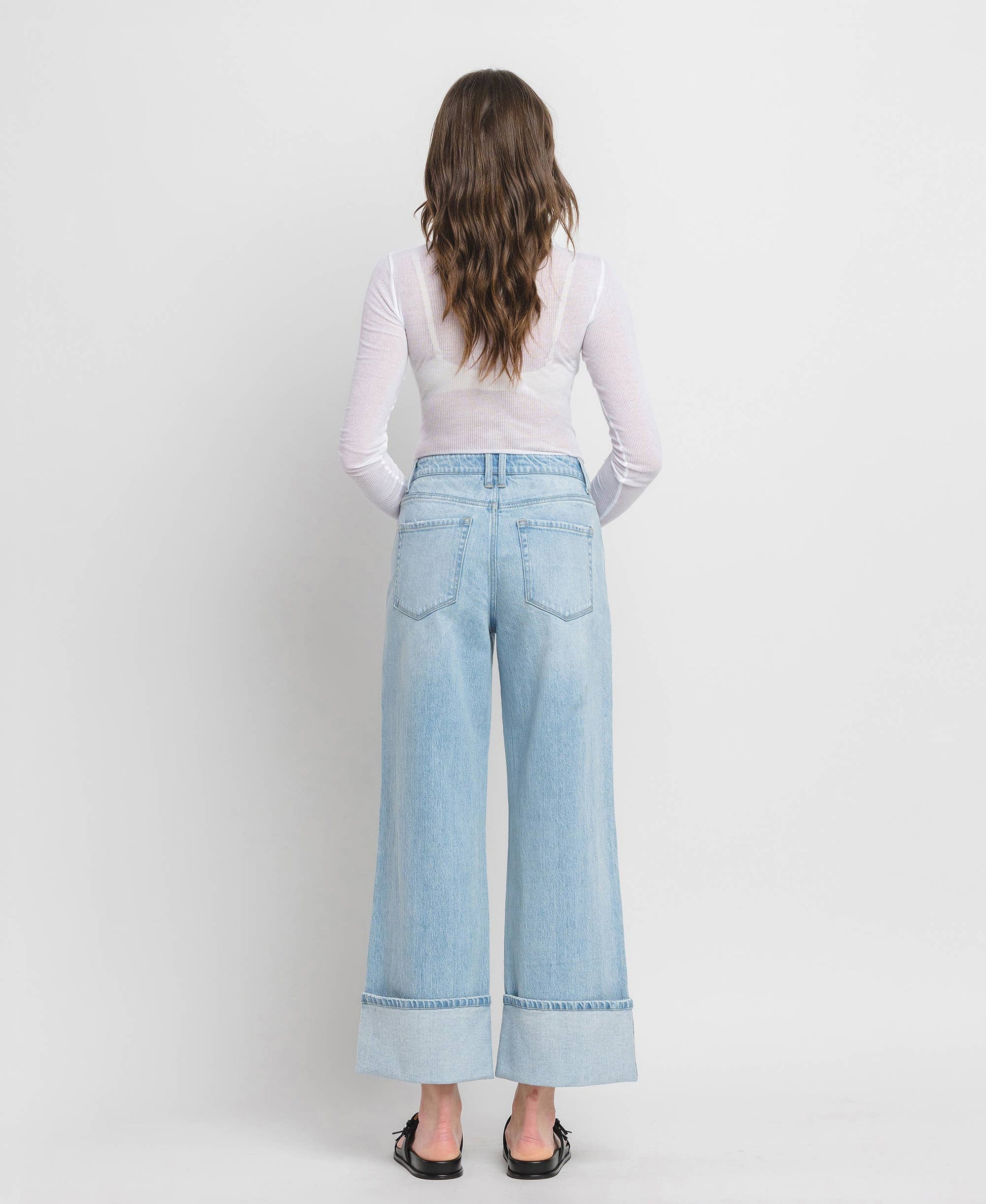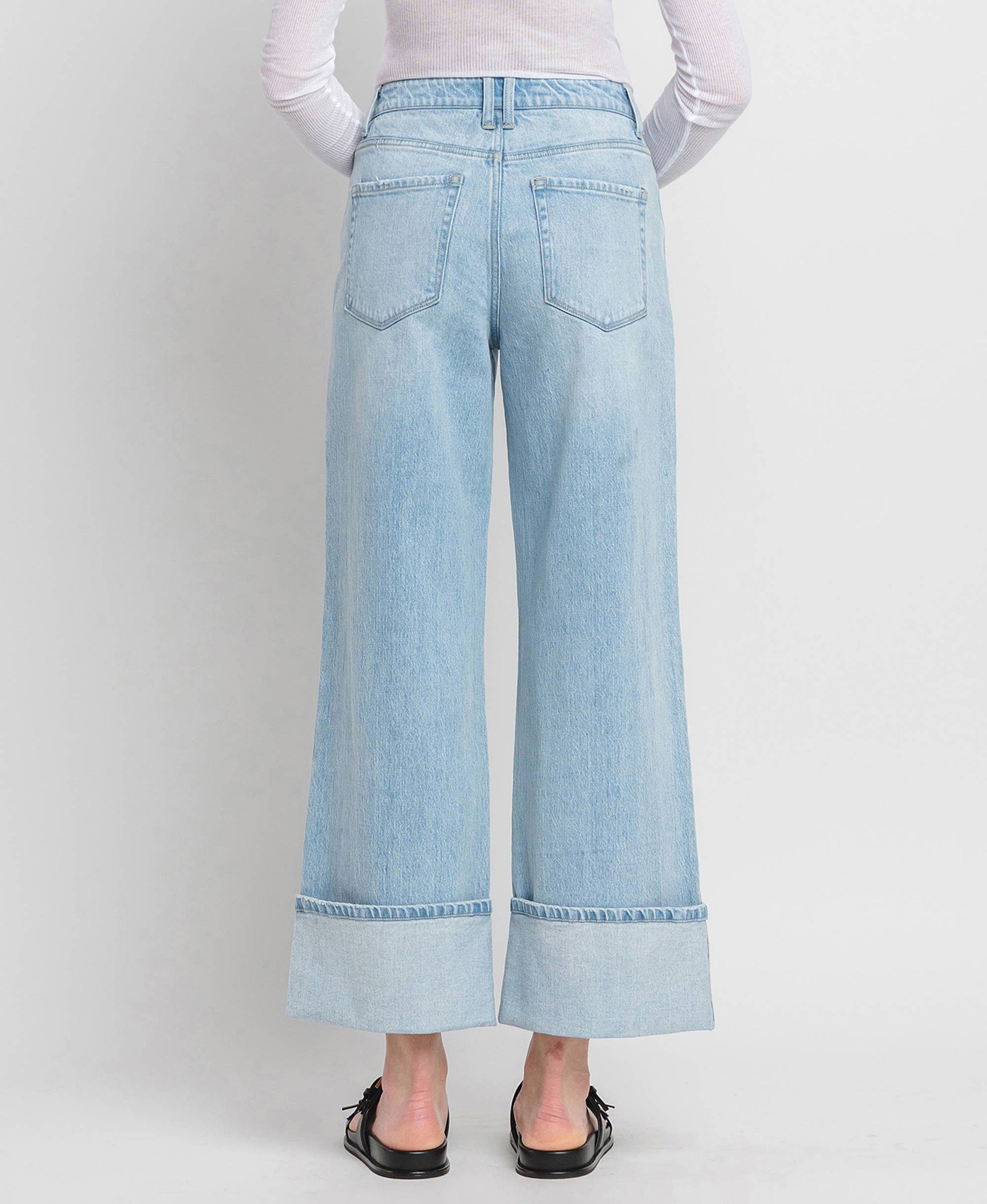 SUPER HIGH RISE CUFFED BAGGY WIDE JEANS